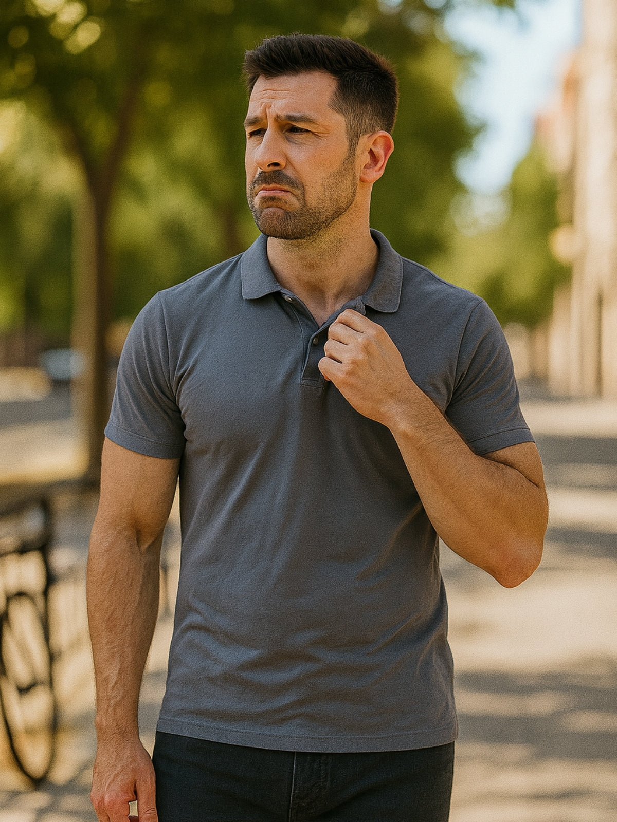 A refined fit that doesn’t cling to the stomach or chest, Only elegance, comfort and presence.